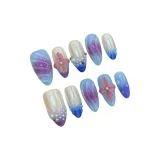 KDOW Aurora Beach Western 3D-эффект Броги Тисненый Aurora Icy Clear Жемчужный Искусственные Ногти Almond