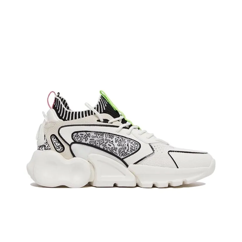Keith Haring x ANTA Амортизирующие подошвы Устойчивые к истиранию MID Топ Беговые кроссовки Мужские Белый Черный