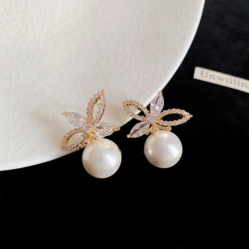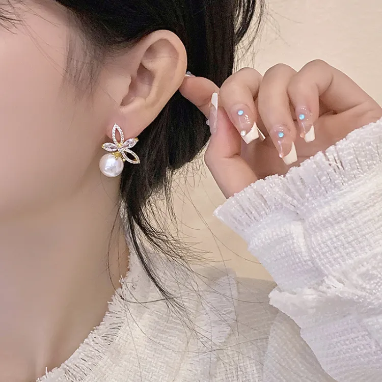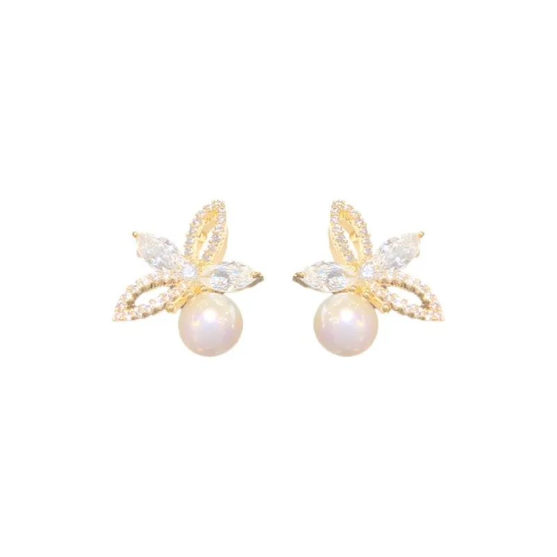 Стиль:Пара серьг-гвоздиков с жемчужным цирконием