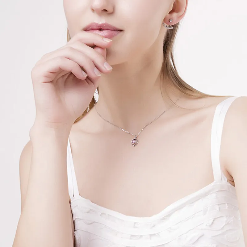 Kelanxi Сплав Циркон Ожерелья Женское Серебро Розовый
