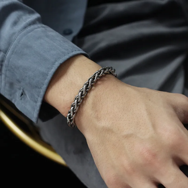 KENMO Браслеты из титанового стального серебра + Набор в подарочной коробке Мужской