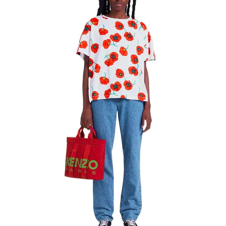 KENZO Poppy Flower Series Белые Женские Рубашки T