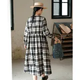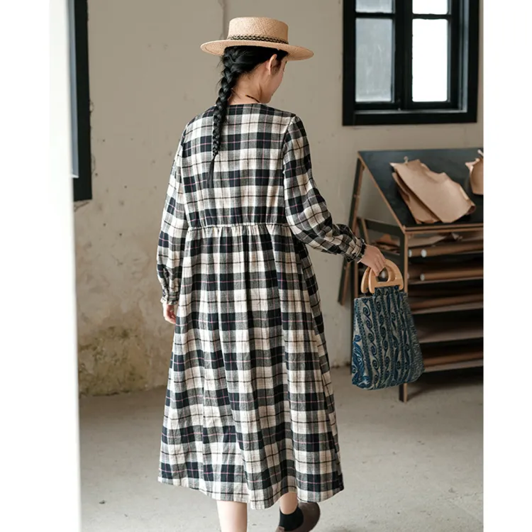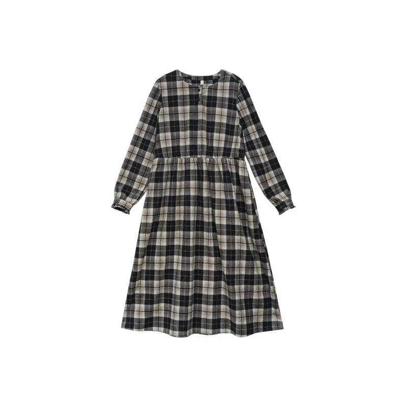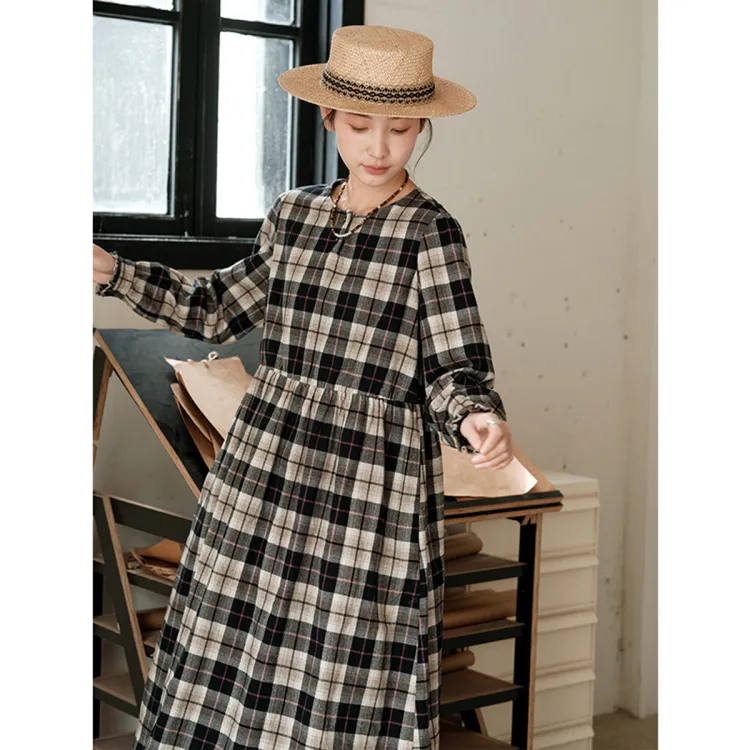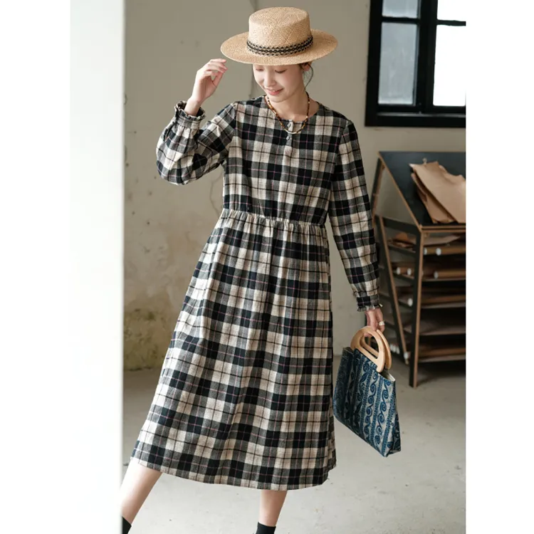 KERANPUJIAN Длинный рукав Платье Koran Женское Клетка