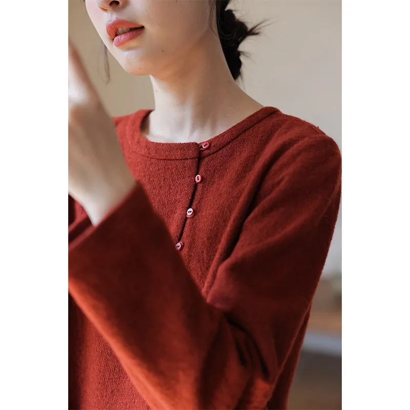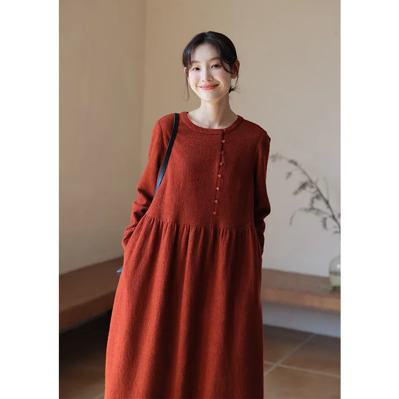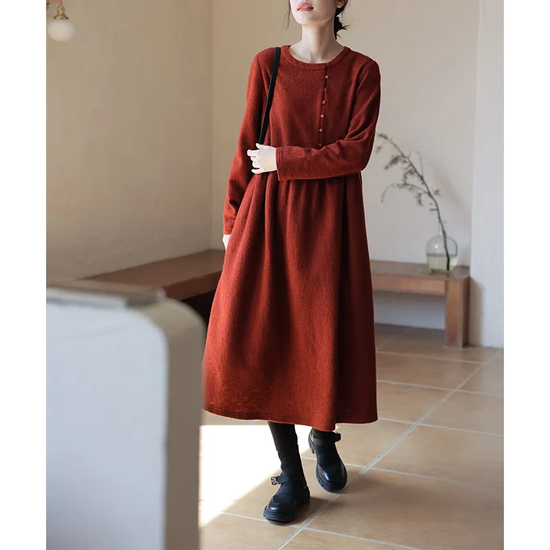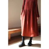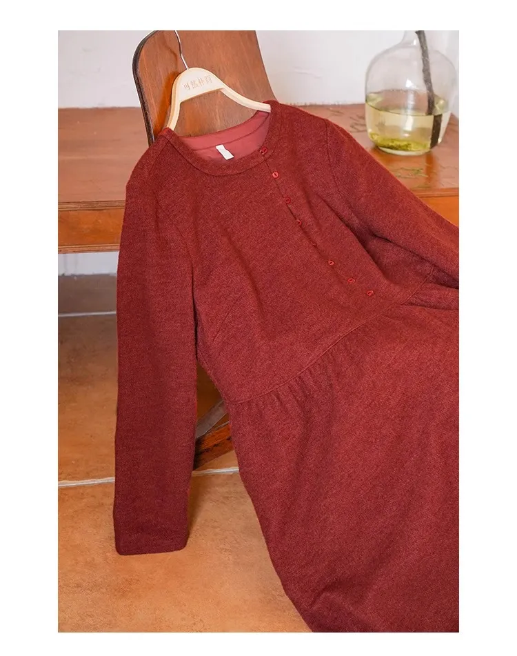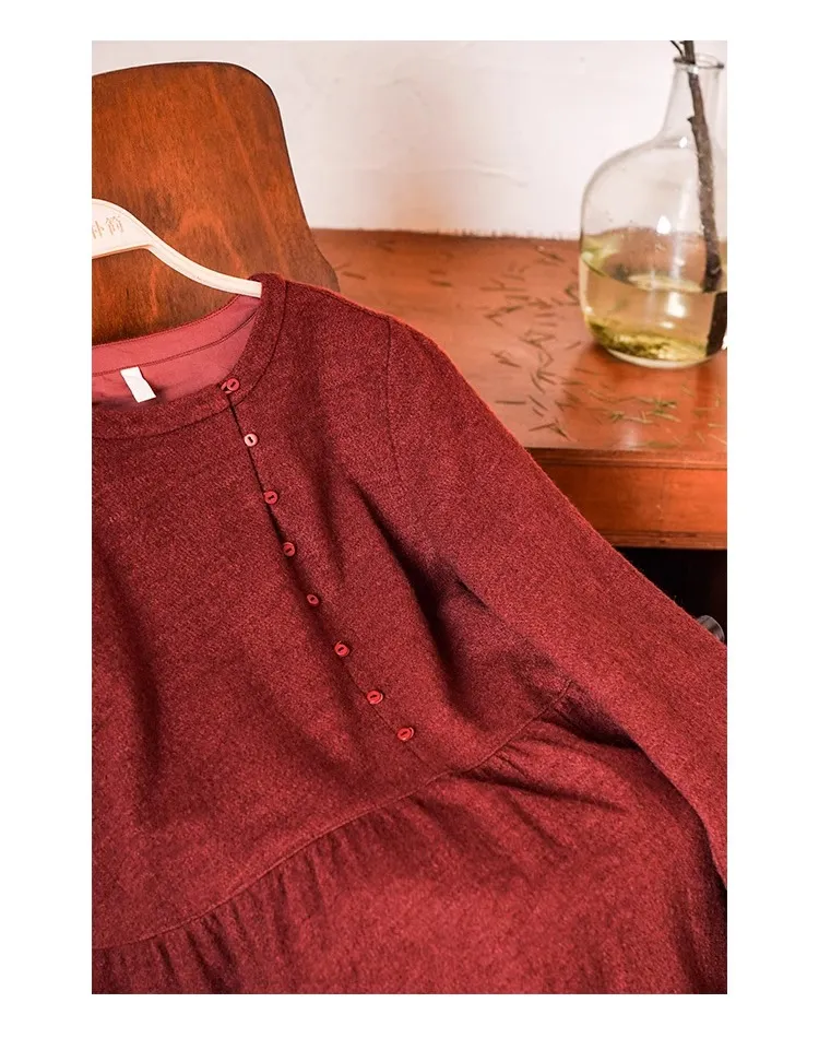 KERANPUJIAN Длинное платье с длинными рукавами женское бордово-красное