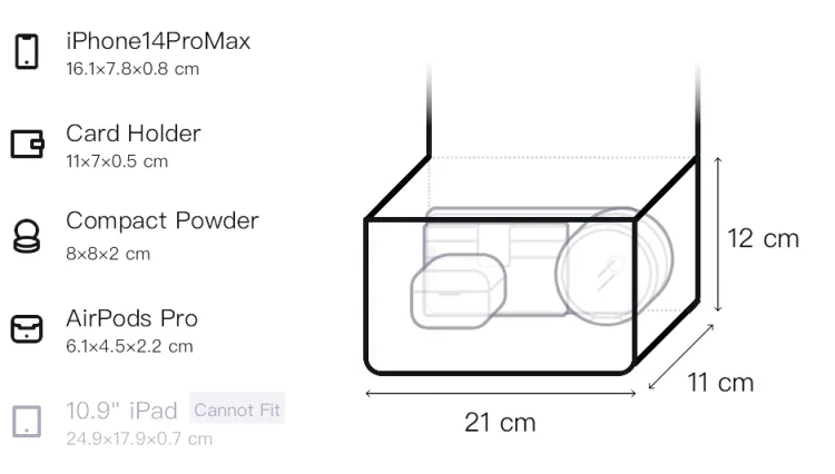 Длина (размер в длину): 21 см, Ширина корпуса: 11 см, Длина корпуса: 12 см