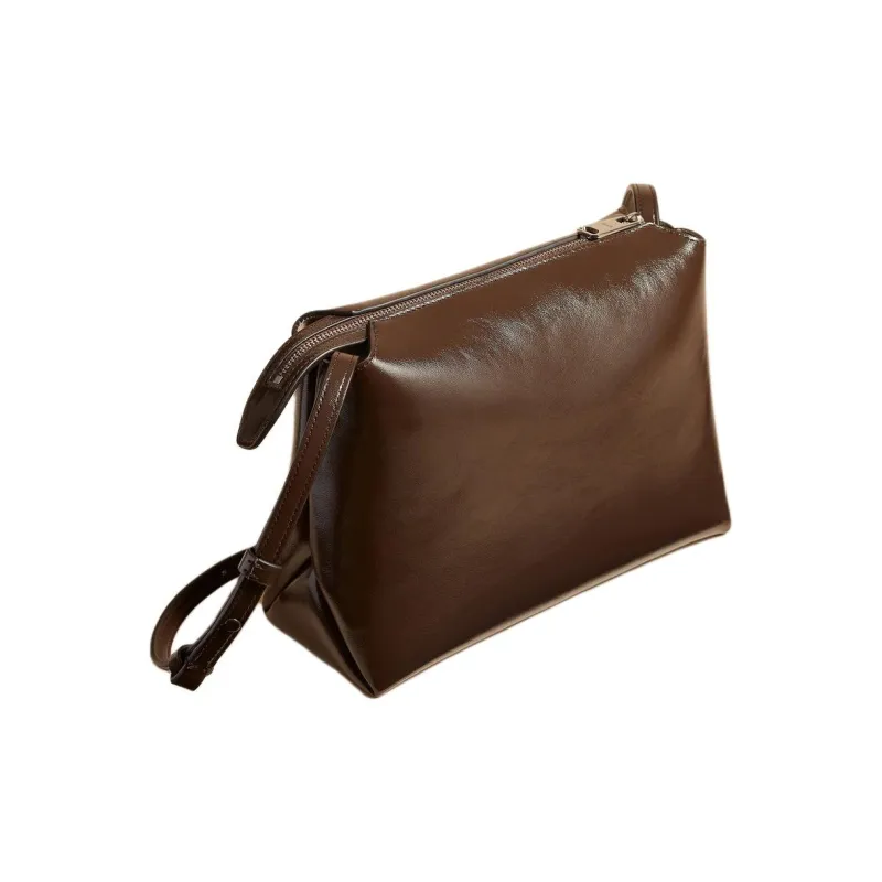 KHAITE Сумка через плечо из лакированной кожи с эффектом трещины женская каштанового цвета