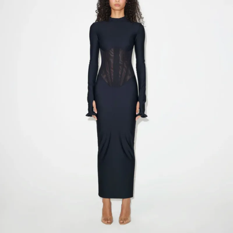 Khy Dilara Findikoglu Collaboration Черный/Черный Женские Длинные Платья с Рукавами