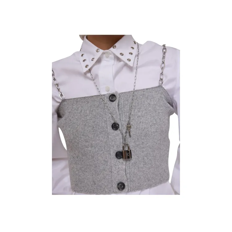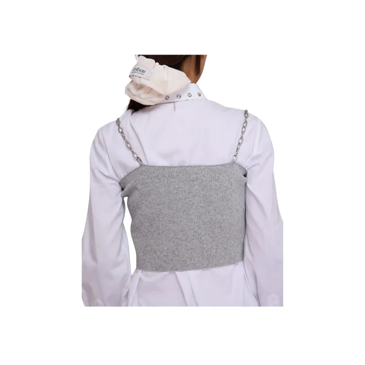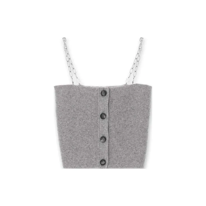 KIMHEKIM Съемный Цепной Ремешок Шерсть Вязаный Топ Топ на Бретелях Женский GREY Серый