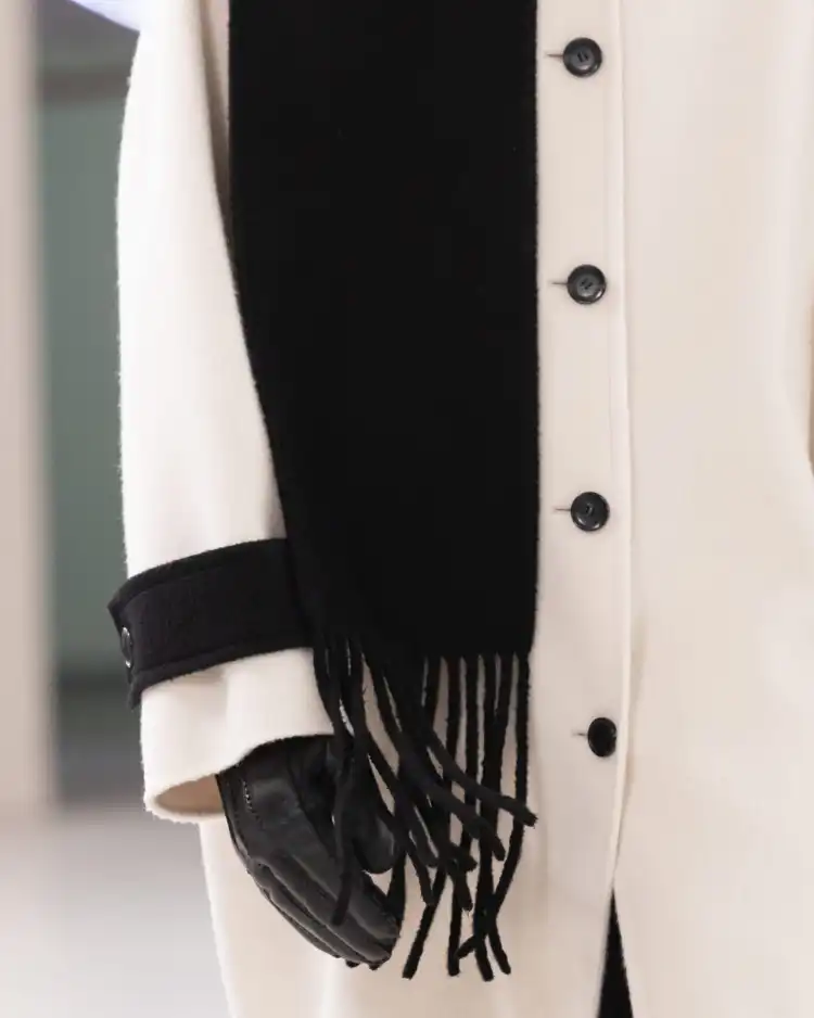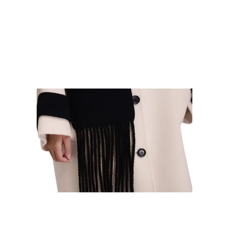KIMHEKIM FW24 Бикор Альпака Шерсть Бахрома Шарф Длинное Пальто Унисекс Айвори Черный Ивовый Черный