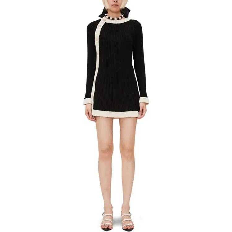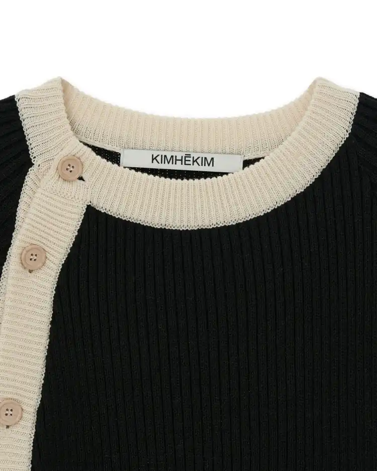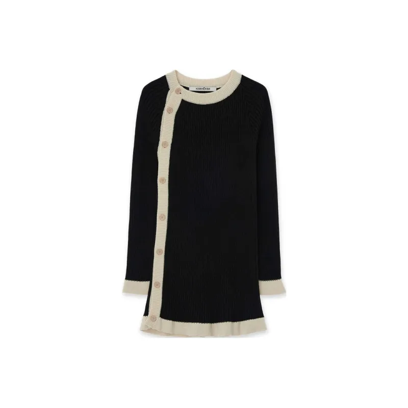 KIMHEKIM SS24 ASYMMETRIC Шерстяной хлопок Длинный кардиган свитер Женский Черный Черный
