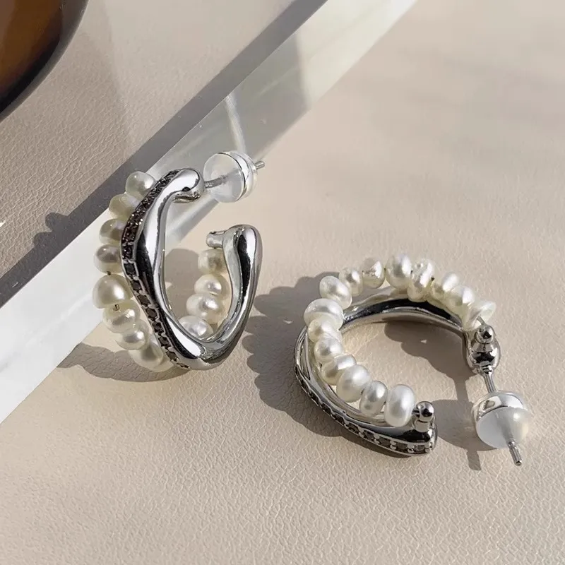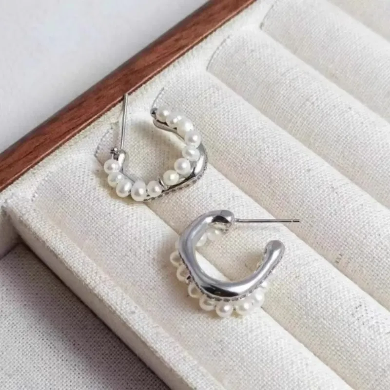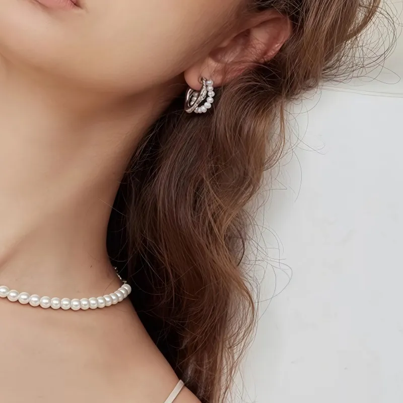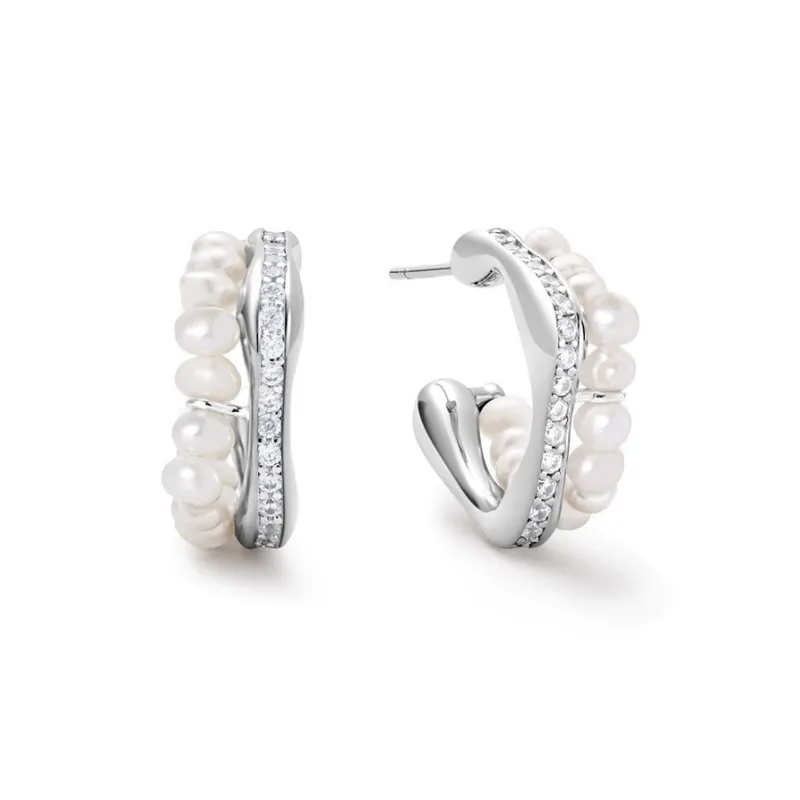 Стиль:Имитация Серьги с Жемчугом - Серебряные