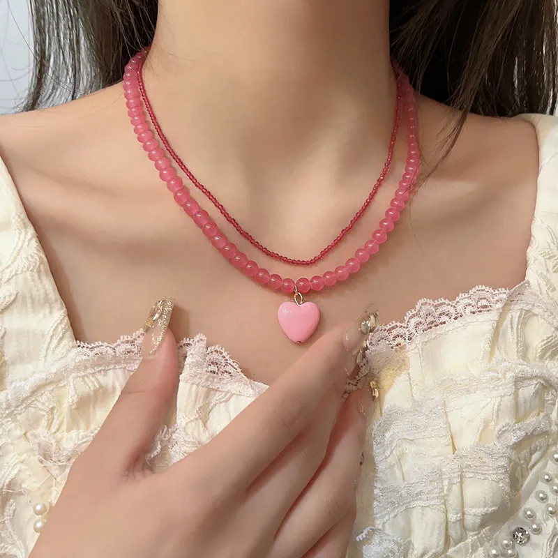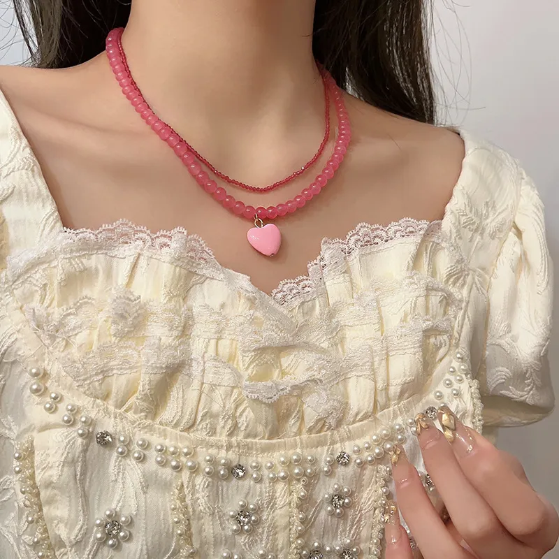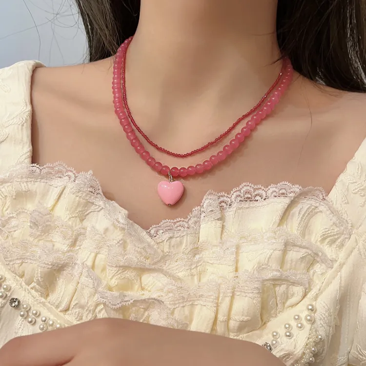 Стиль:Двойное стакованное ожерелье с розовым сердцем