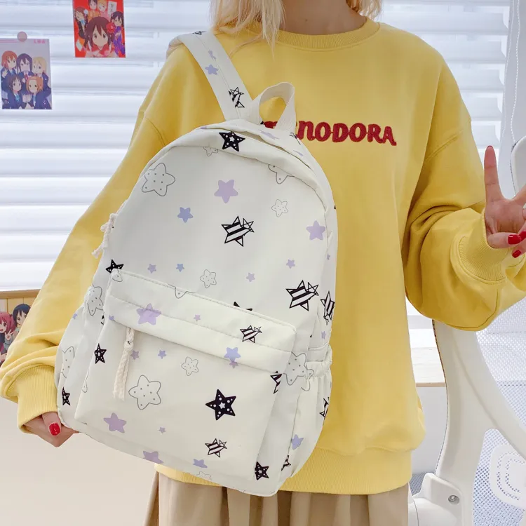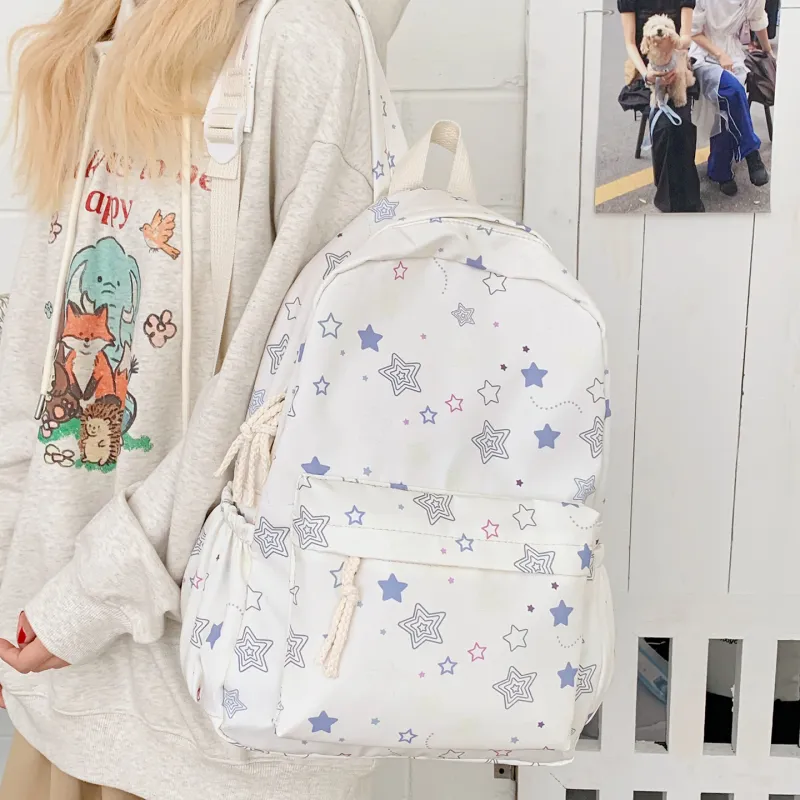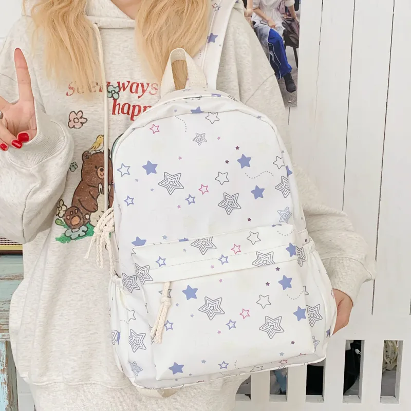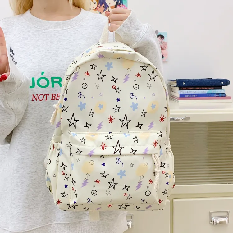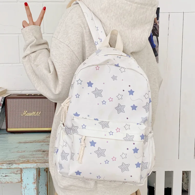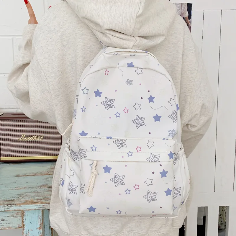KINMAC Нейлоновый рюкзак унисекс Орхидея Улыбающееся лицо Синий звездный Черный звездный