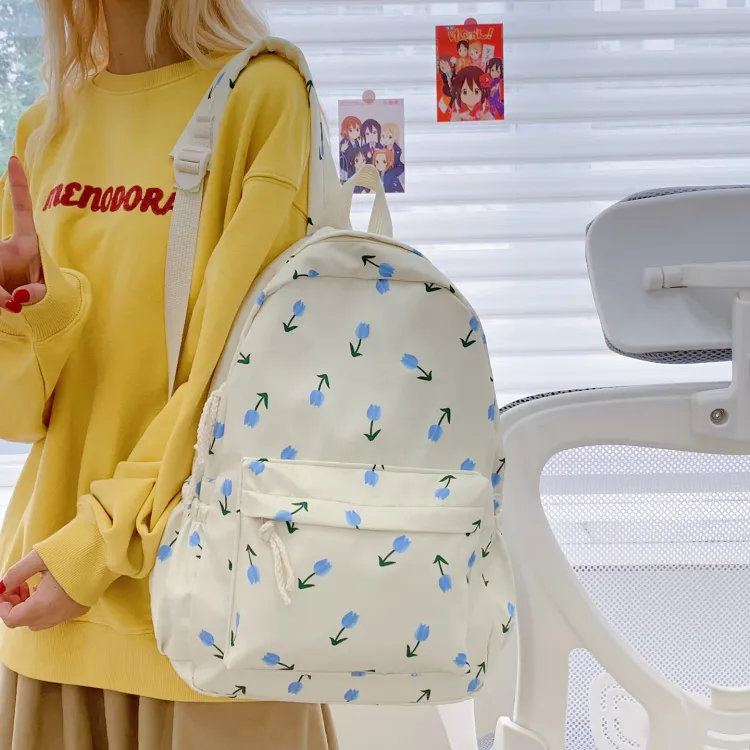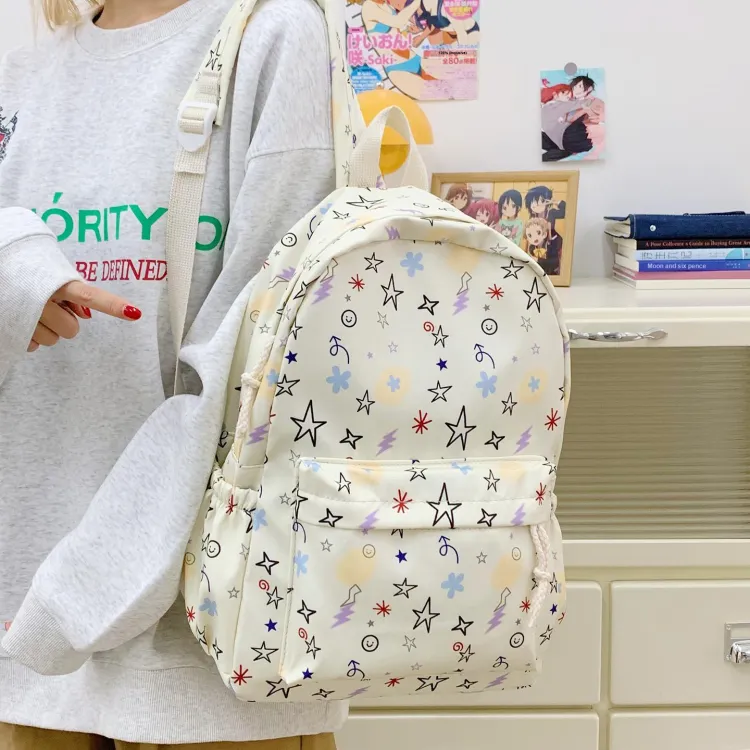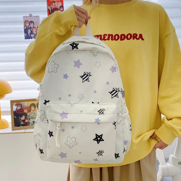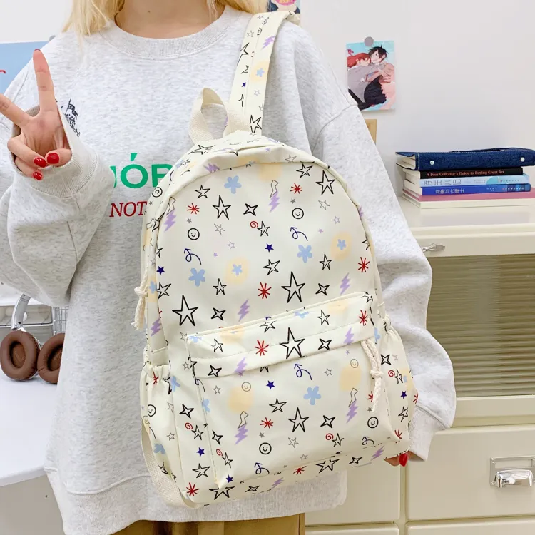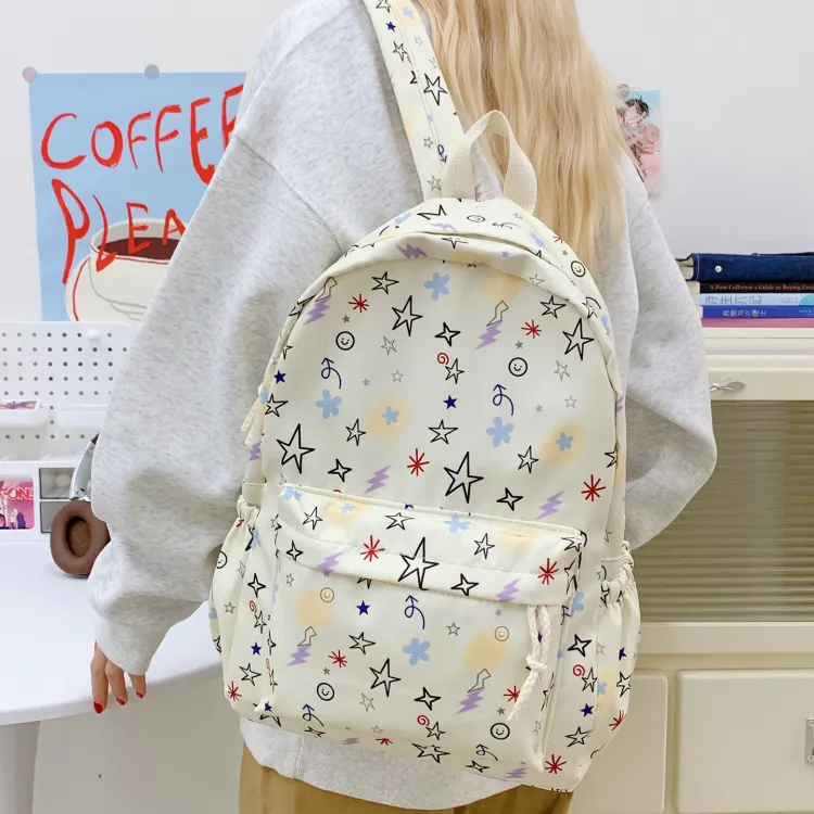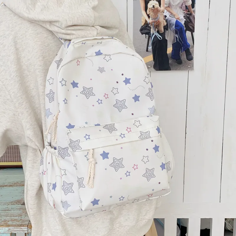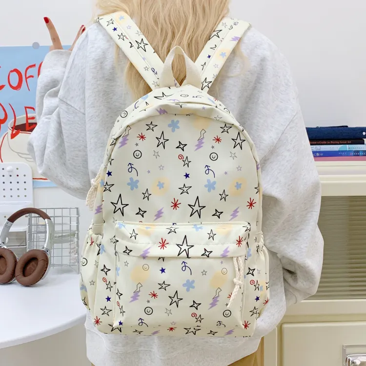 KINMAC Нейлоновый рюкзак унисекс Орхидея Улыбающееся лицо Синий звездный Черный звездный