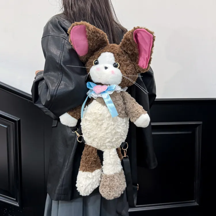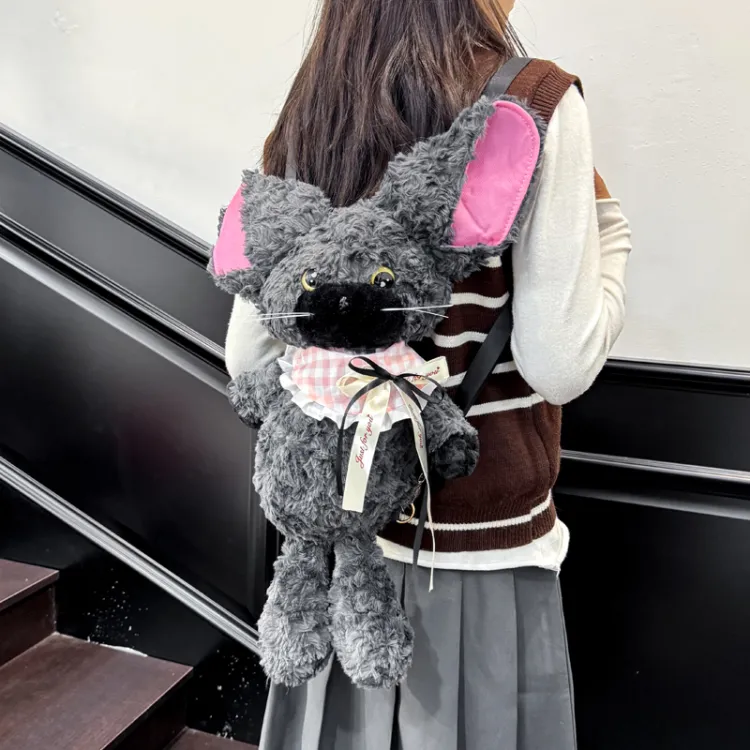 KINMAC Плюшевый рюкзак стандартный унисекс серый экрю коричневый