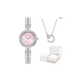 Комплект:Розовый циферблат часов с ожерельем + коробка (K318G02)