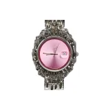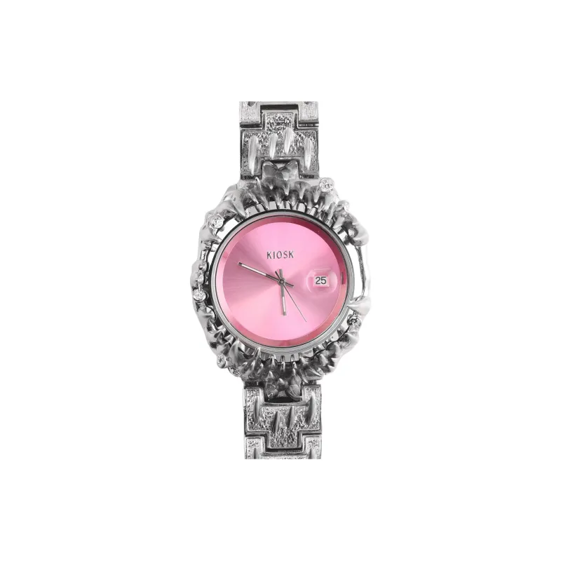 KIOSK Серебряный Роскошный Американский Кварц Механизм Нержавеющая Сталь Ремешок Часы Унисекс Розовый Циферблат Часы
