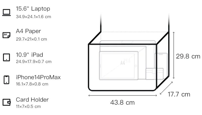 Д43,8*Ш17,7*В29,8 см