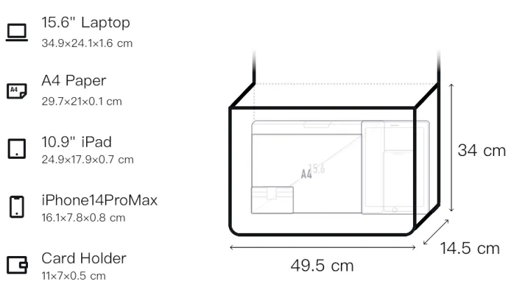Д49,5*Ш14,5*В34см