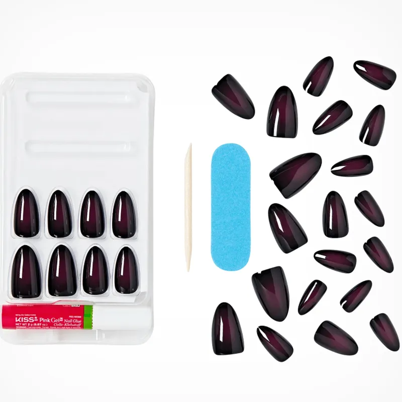 KISS NEW YORK Jumpin' In False Nail Миндаль Темно-фиолетовый Градиентный Однотонный 28 шт