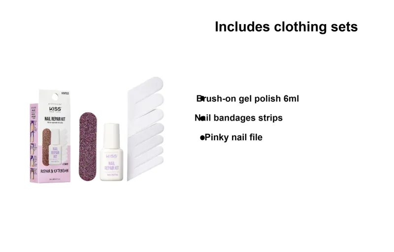 Трехкомпонентный комплект: 6 мл лак для ногтей, кисть + нарукавки для ногтей + маленькая пилка для ногтей