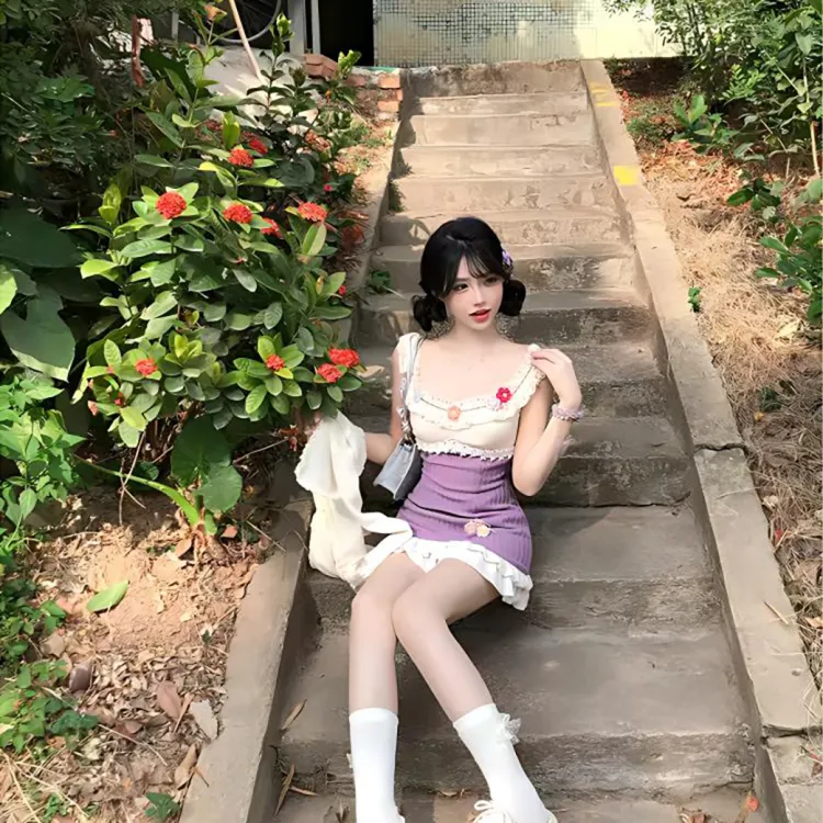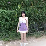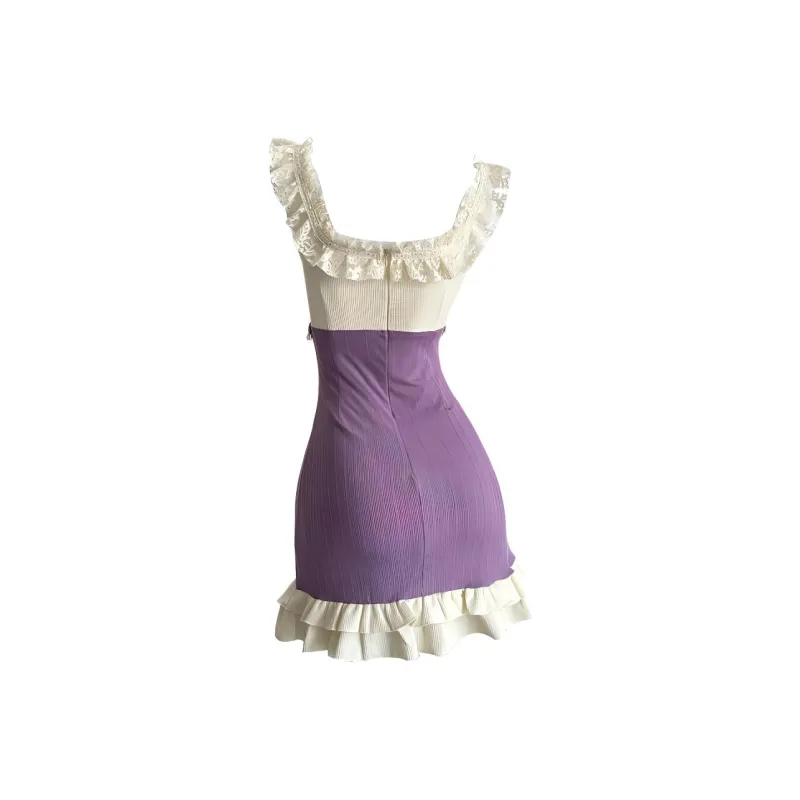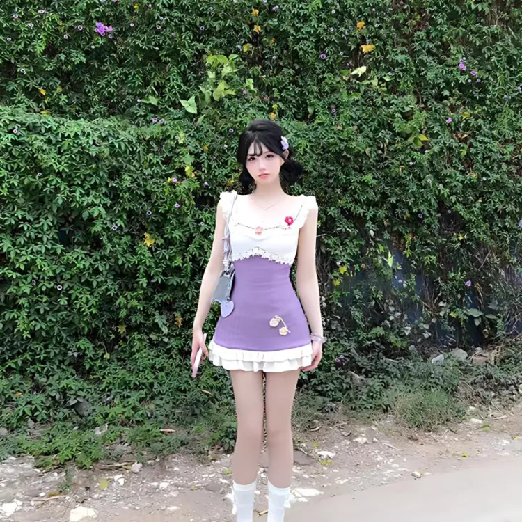 KKX Короткий рукав Платье Женское Фиолетовое Трикотажная ткань Сарафан