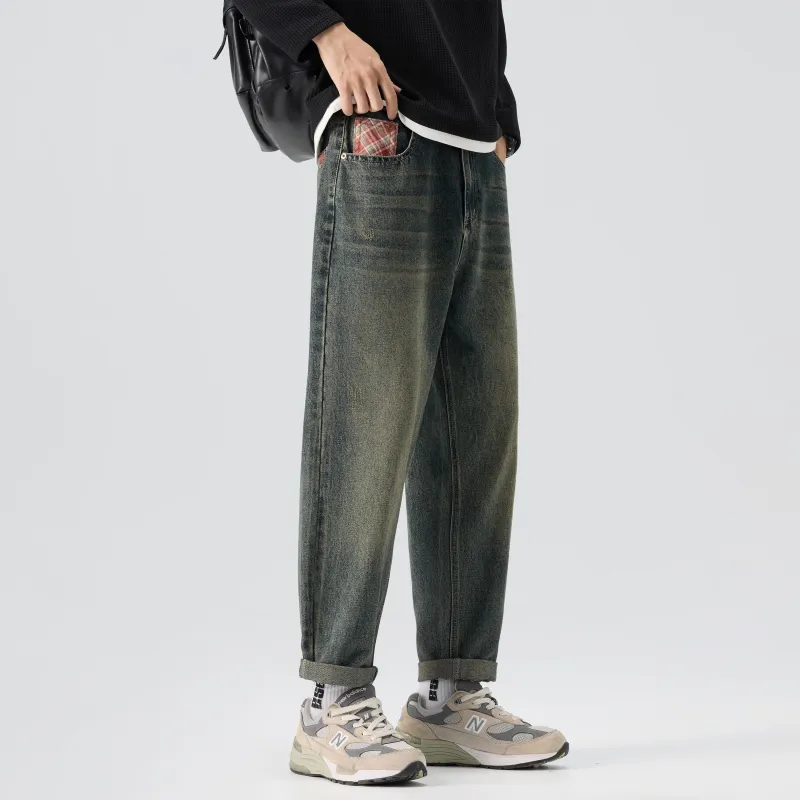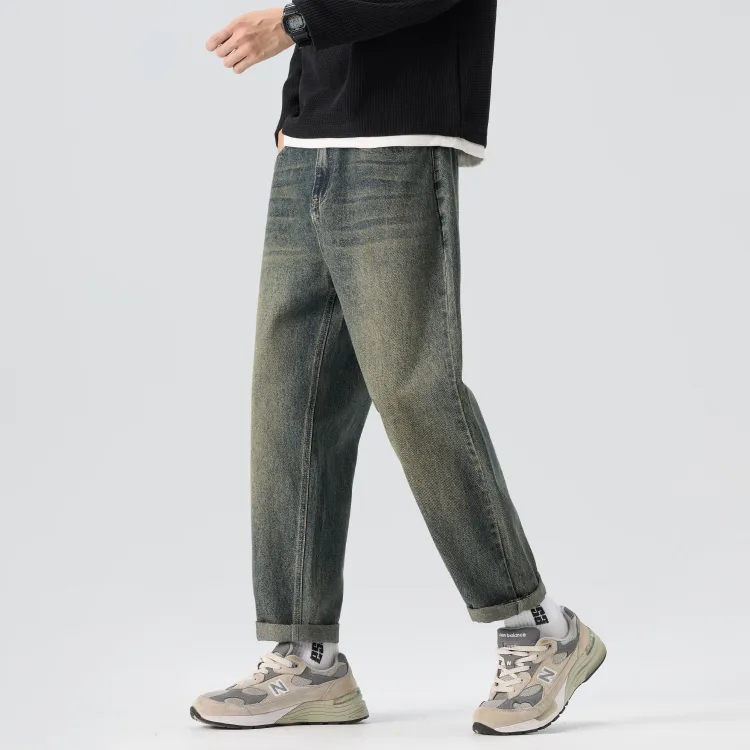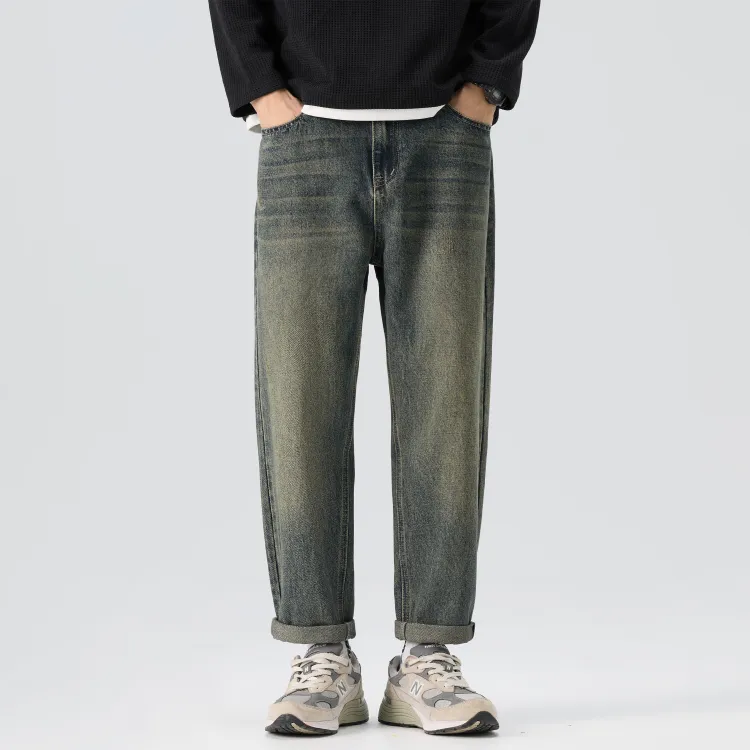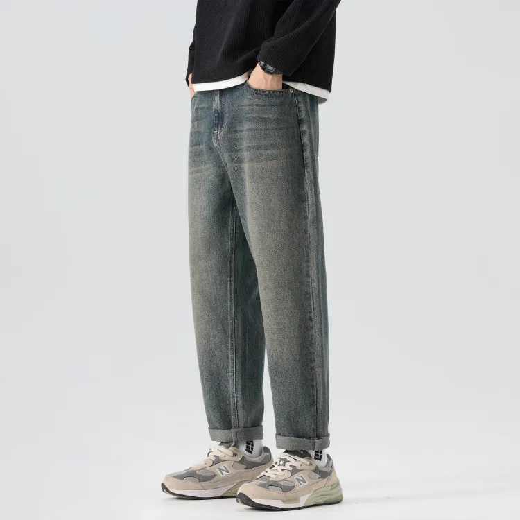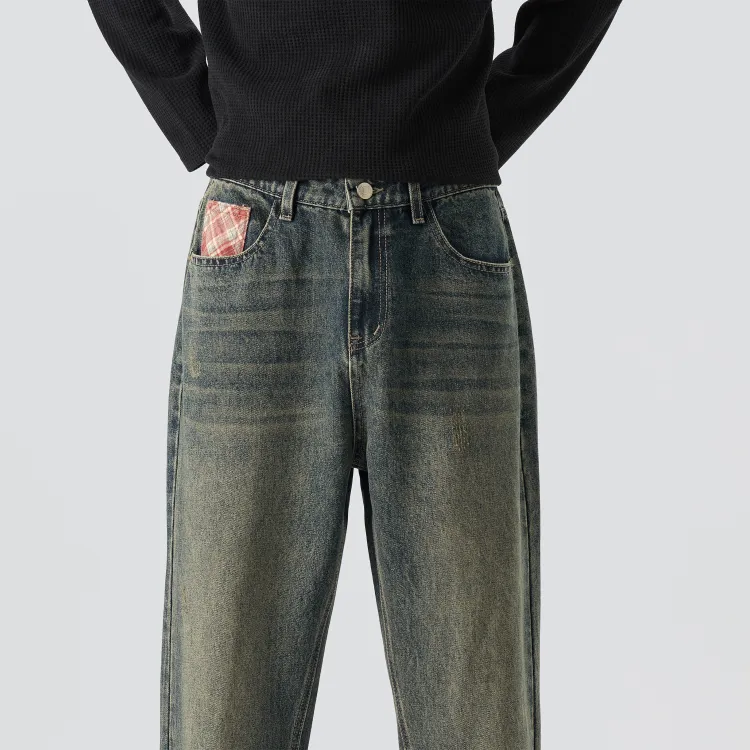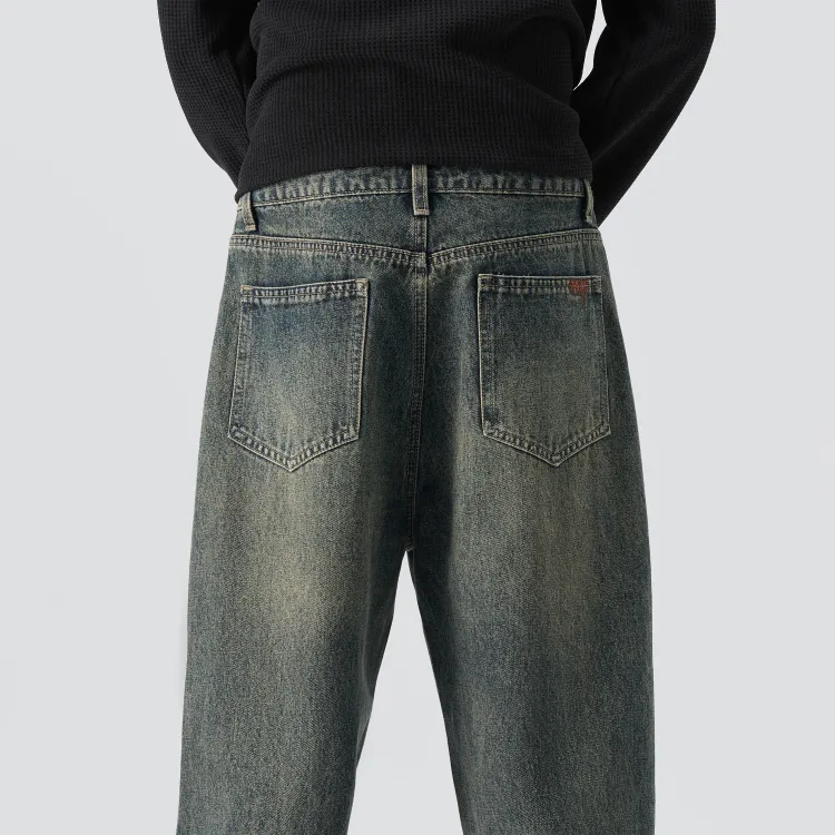 KM Винтажные синие унисекс джинсы