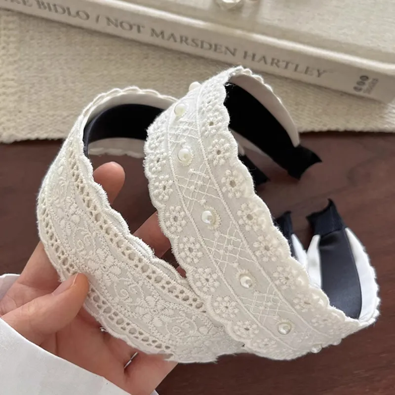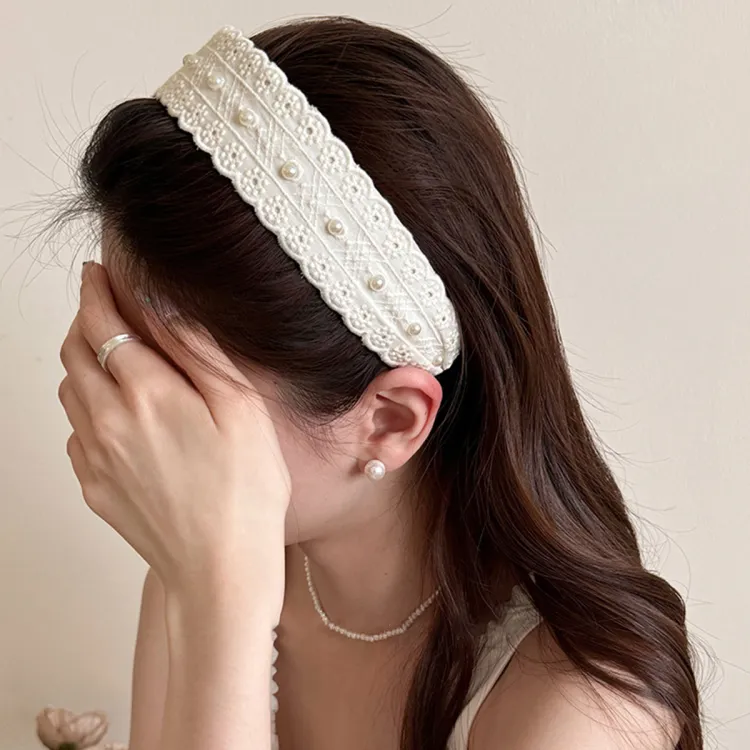 Кружево, жемчужный, широкая резинка, ободок
