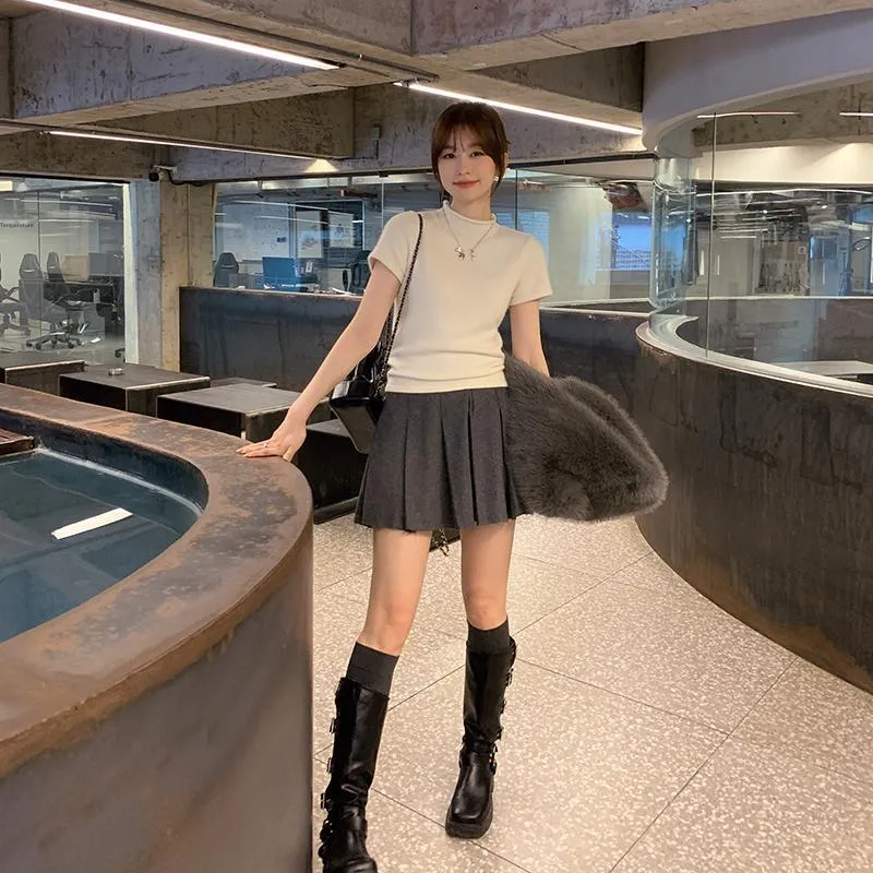 Kong Yili Темно-серый Женские Повседневные Короткие Юбки