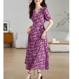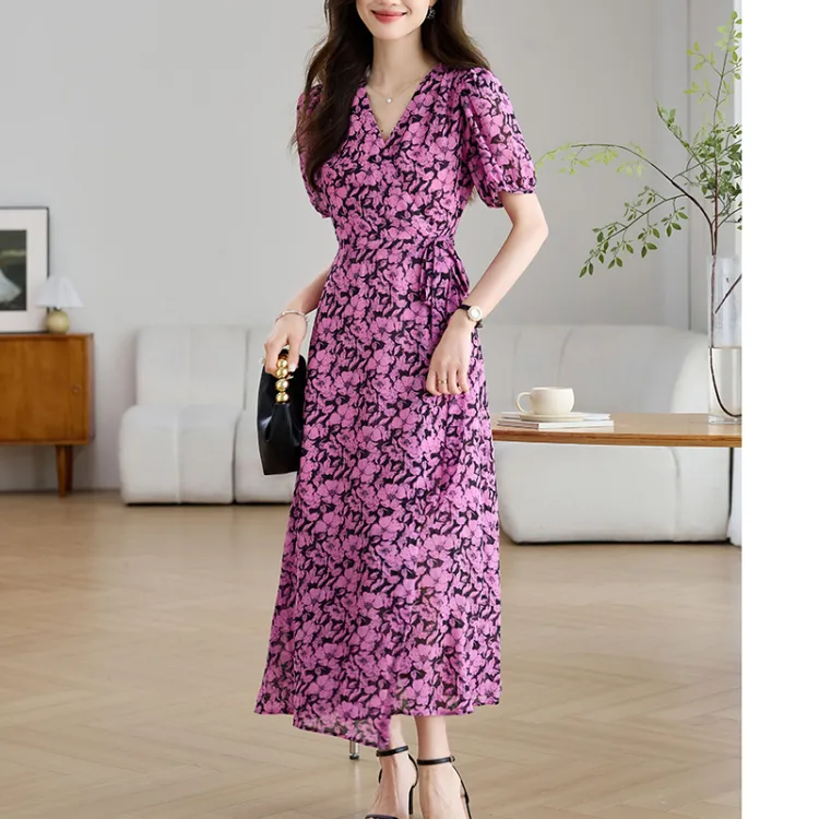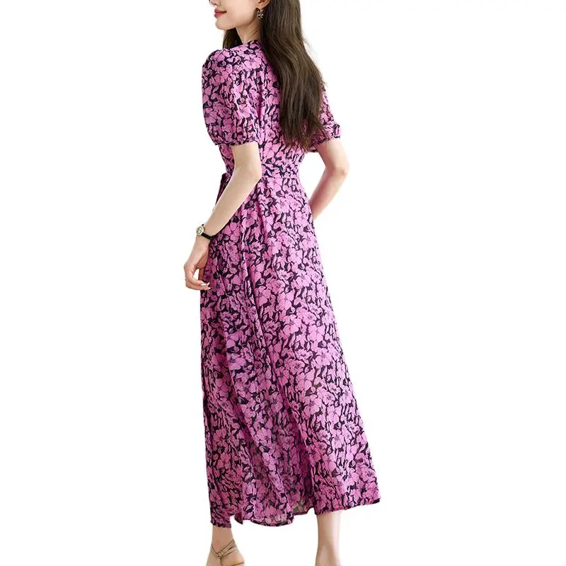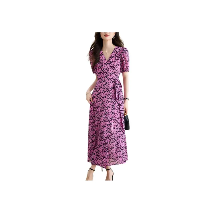 Корейский стиль Короткий рукав Платье Женское Розовый Красный
