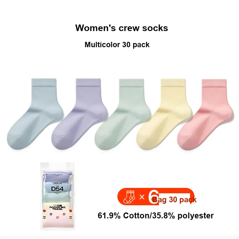 Цвет:Женские носки Crew, разноцветные, 30 пар (размер 34-38).