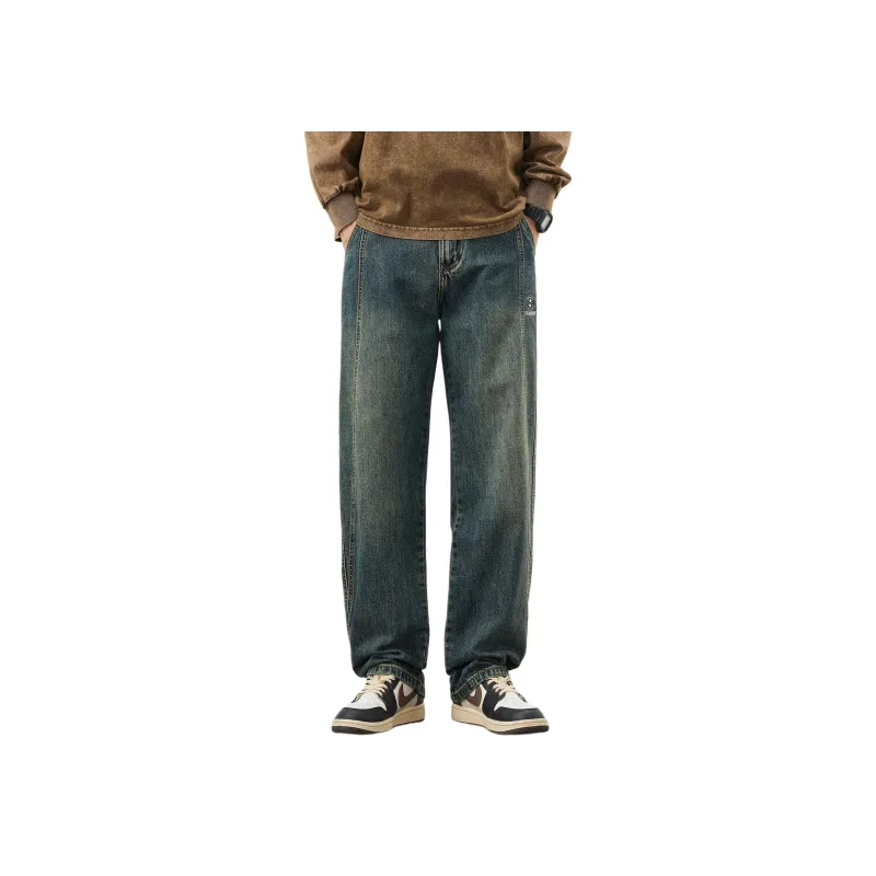 KPADB Винтаж Пэчворк Промытые Повседневные Брюки Мужские
