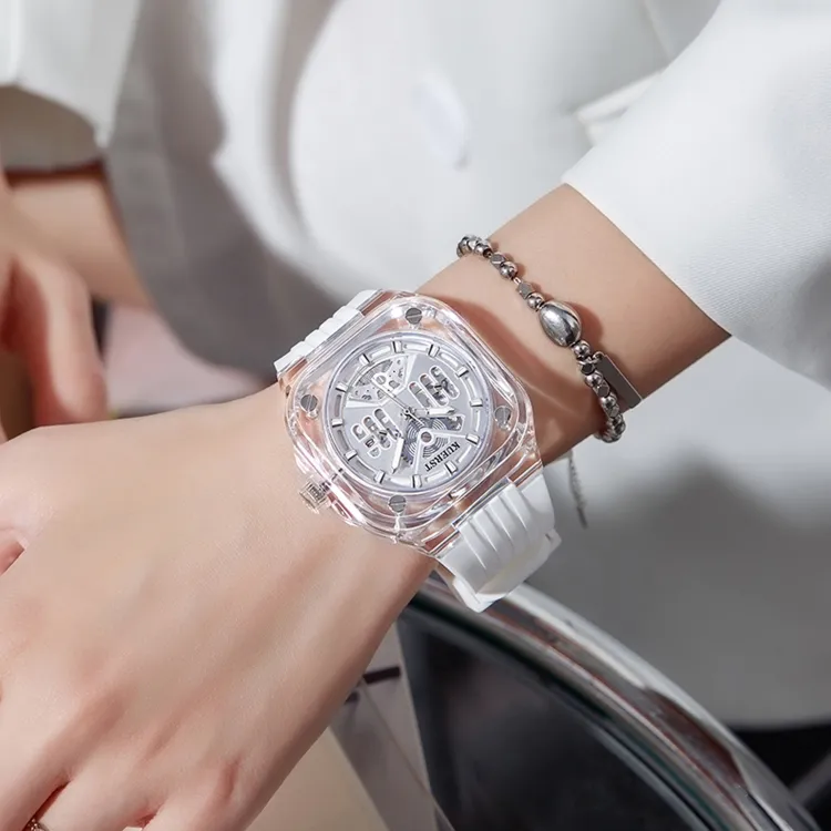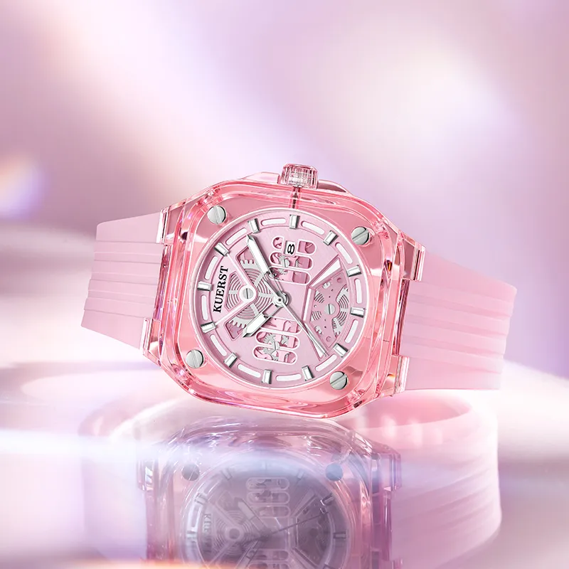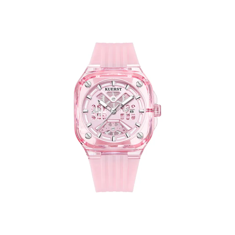 KUERST Кварцевый механизм резиновый ремешок часы унисекс розовый циферблат