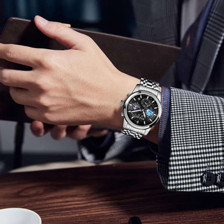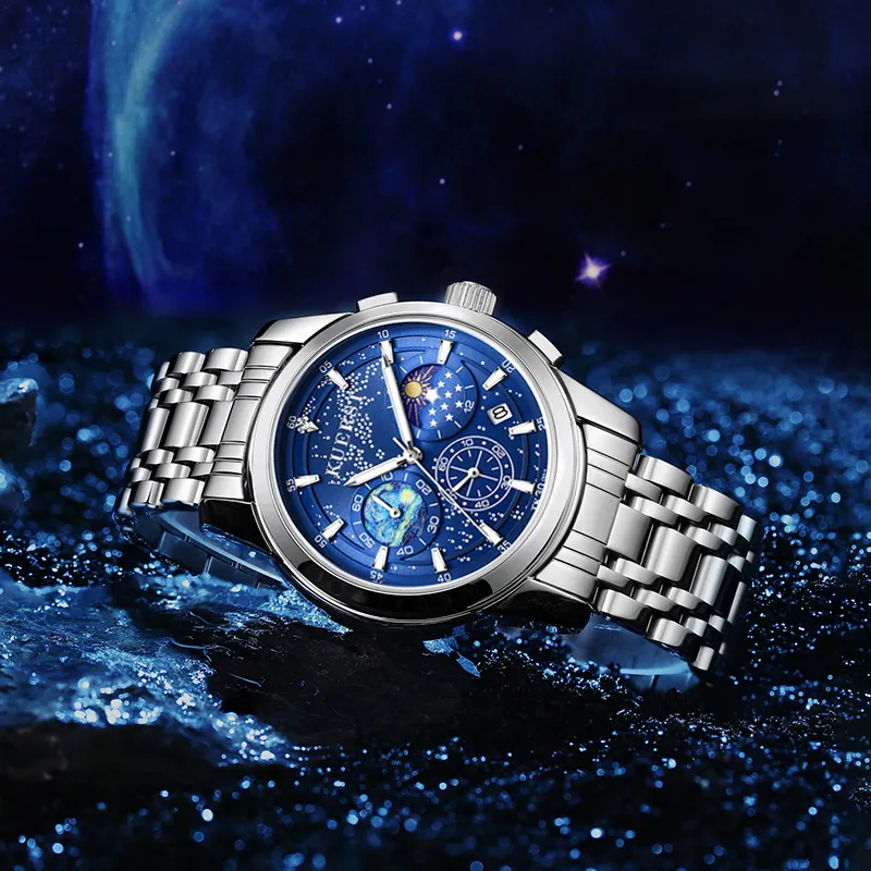 KUERST Кварцевый механизм стальной ремешок мужские часы синий циферблат