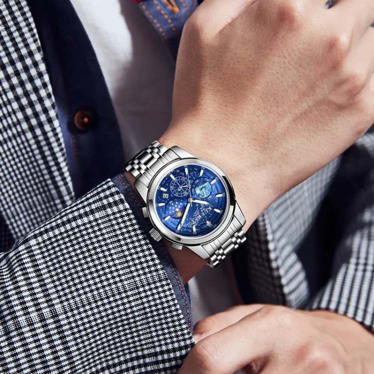 Циферблат Цвет:Синий циферблат, стальной браслет.