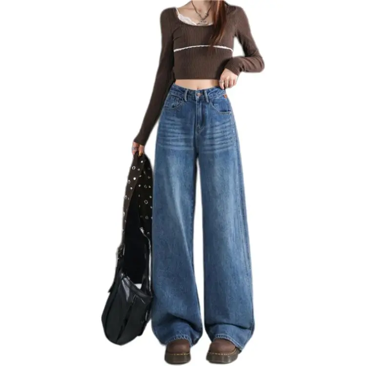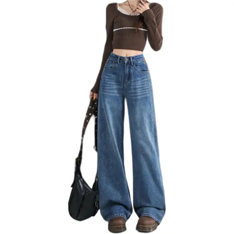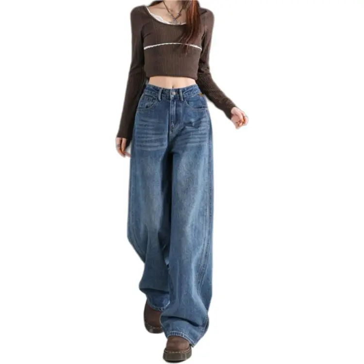 KULAIYA Винтажные синие штаны унисекс джинсы