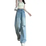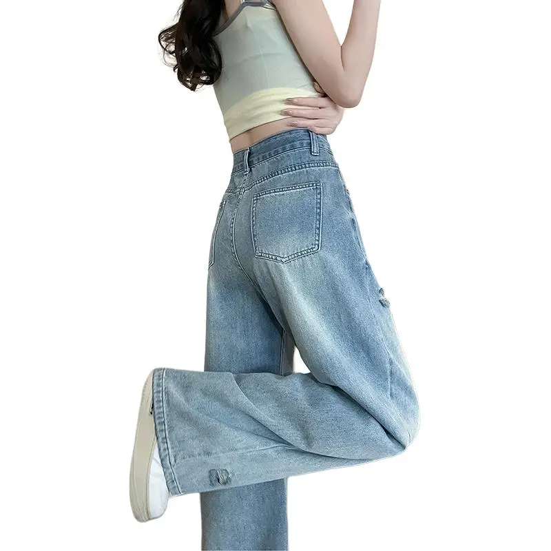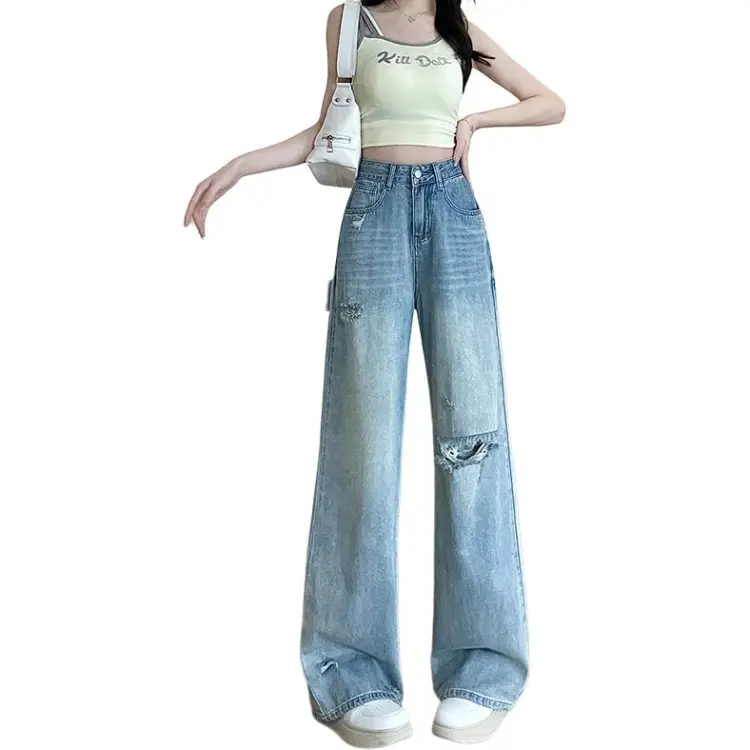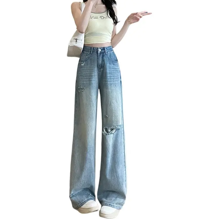 KULAIYA Blue Ripped Pants Women's Jeans KULAIYA Синий Разорванные Штаны Женские Джинсы