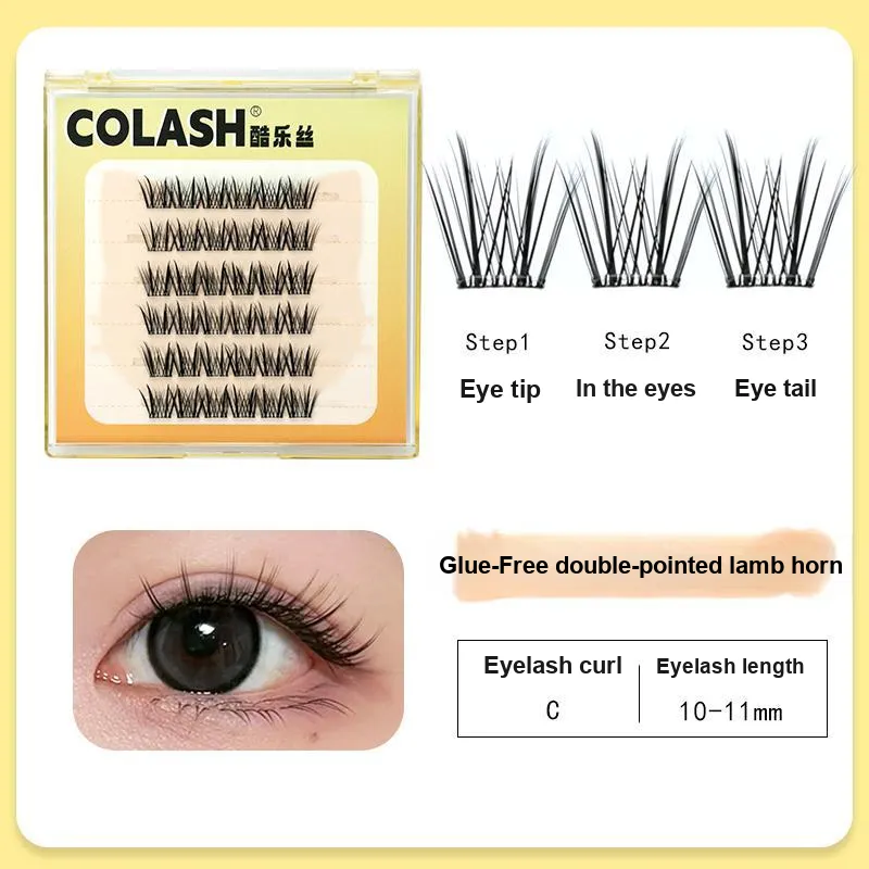 KULESI Не клеящиеся Двойные SHARP Овца Horn Накладные ресницы Одиночный кластер удлинение