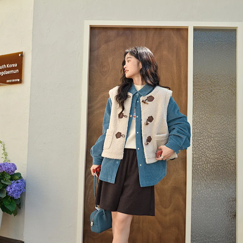 Комплект:Комплект одежды (Жилет Абрикос 9006 + Синие Пуховики 9003)
