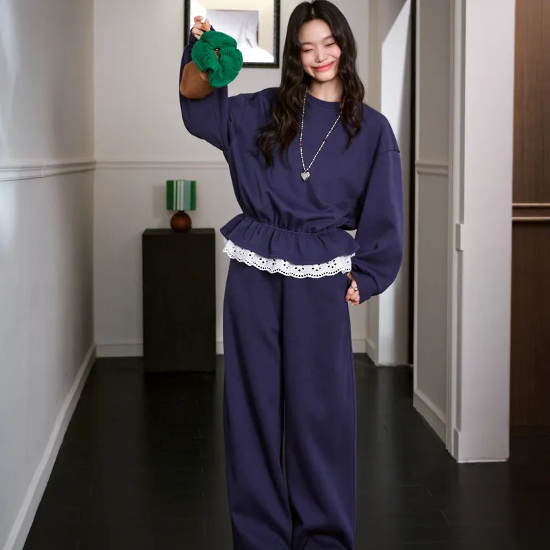 KUOSE Темно-фиолетовый свитшот 0003 + темно-фиолетовые повседневные штаны 0009 Женские повседневные костюмы