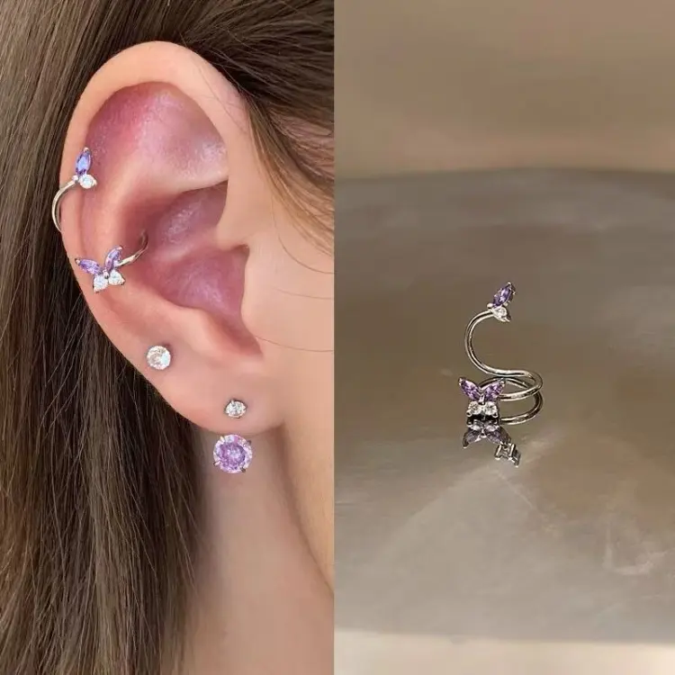 S-образные серьги-кольца "Бабочка" - фиолетовые [одиночные]