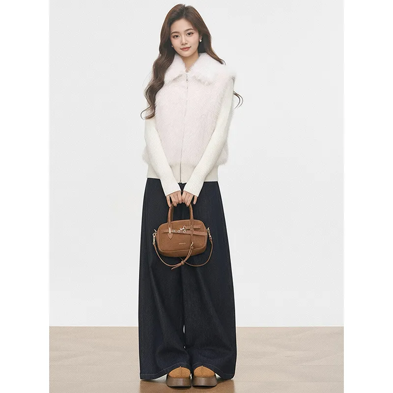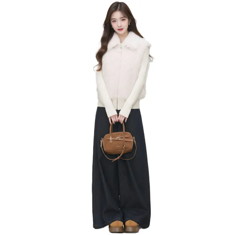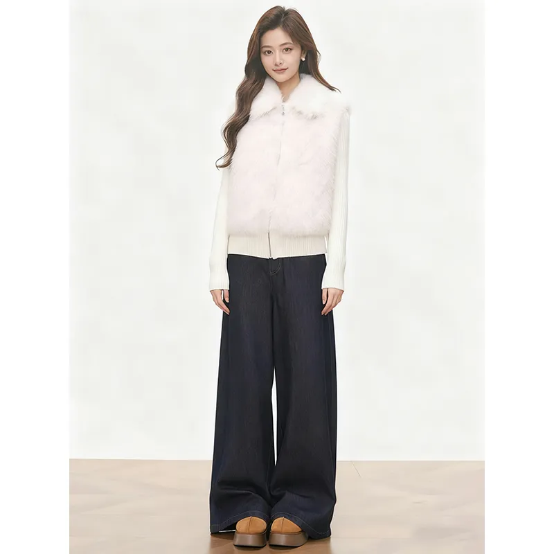 Комплект:Белое пальто + джинсы