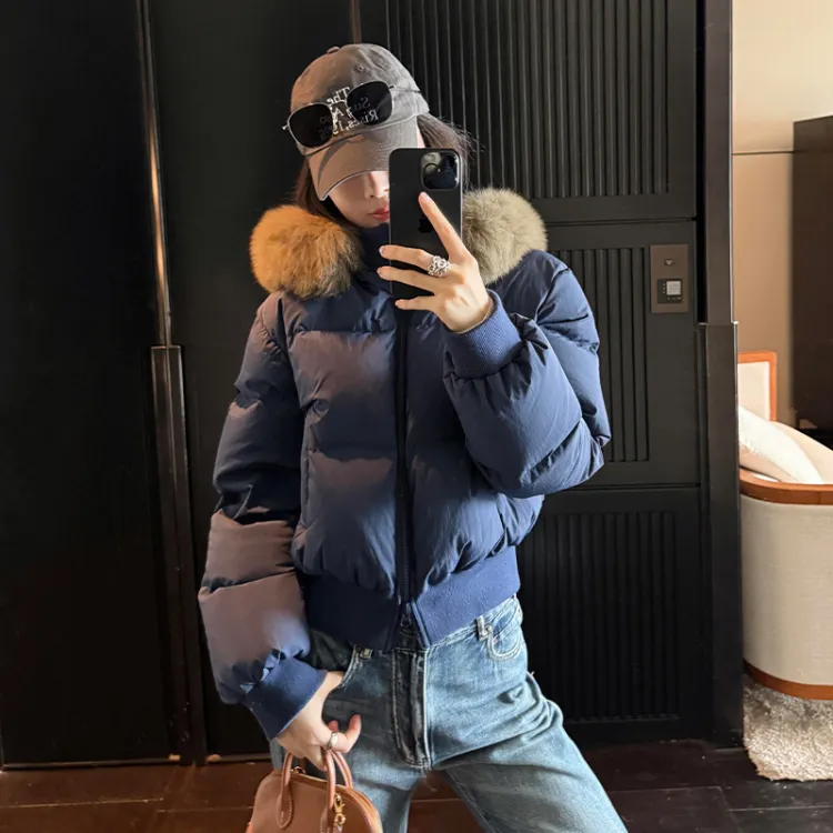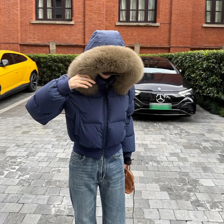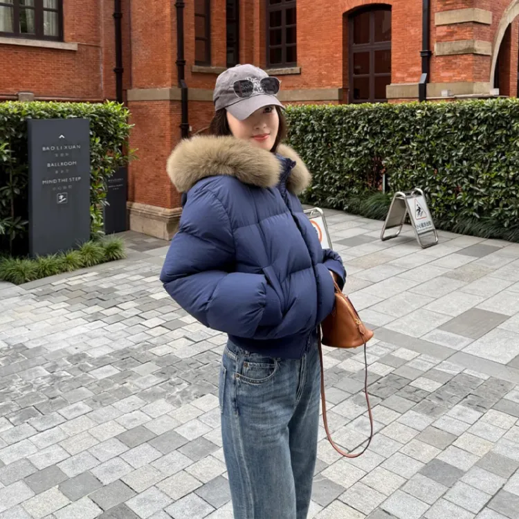 Темно-синяя пуховая куртка