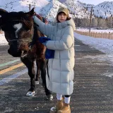 Светло-синий хлопковый пуховик [удлиненный, утолщенный]