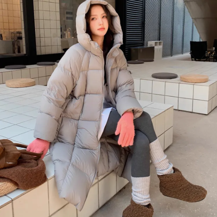 Серый хлопковый пуховик [удлиненный, утолщенный]