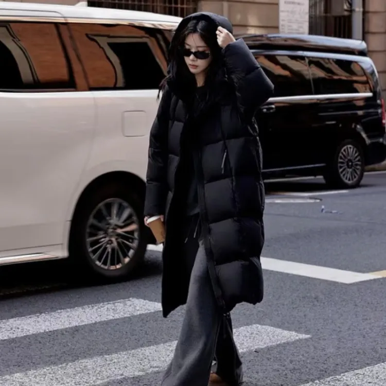 Чёрный хлопковый пуховик [удлинённый, утолщённый]