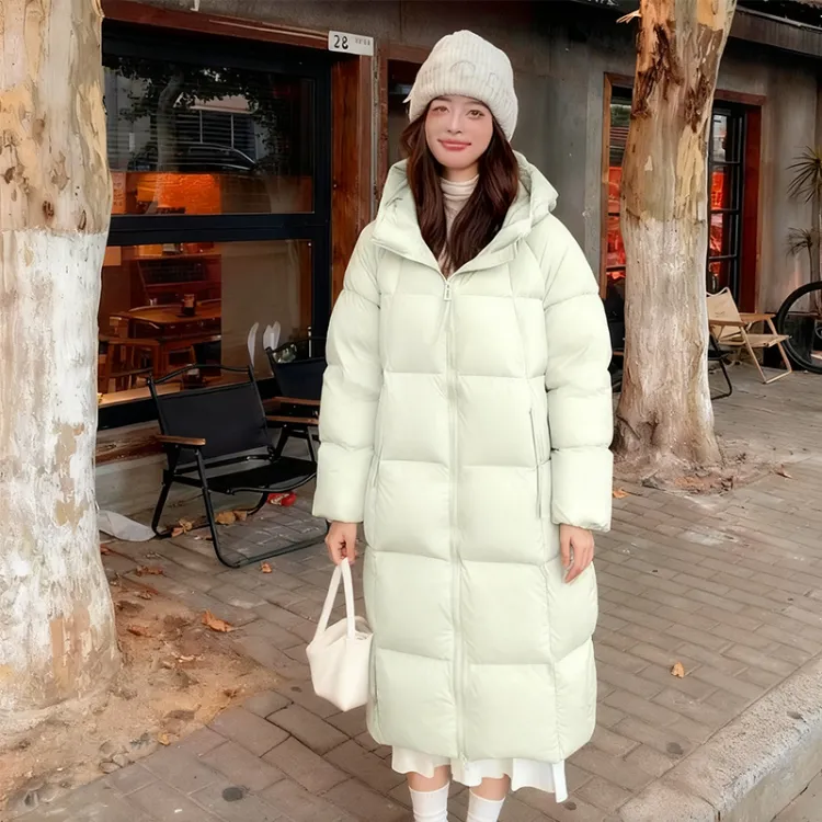 Светло-зеленый хлопковый пуховик [удлиненный, утолщенный]