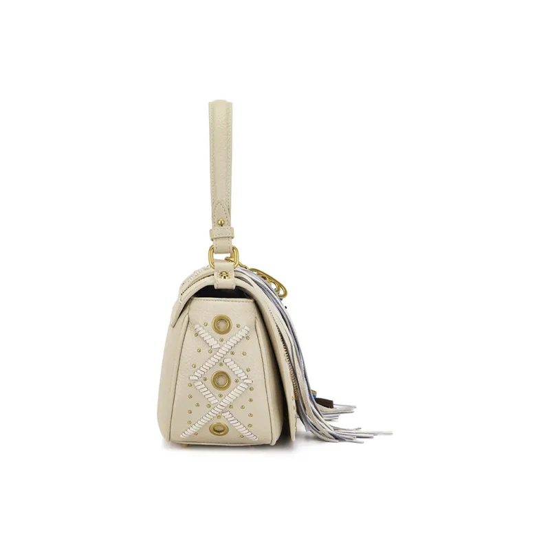 La Carrie Сумка из крупнозернистой текстуры коровьей кожи Saddle обычная женская цвет экрю