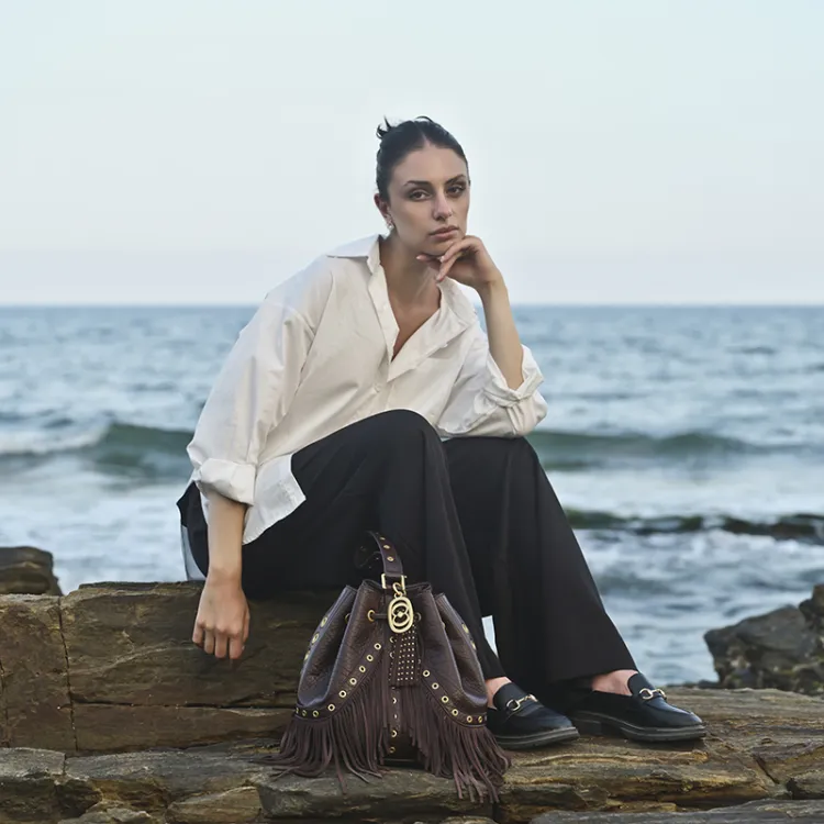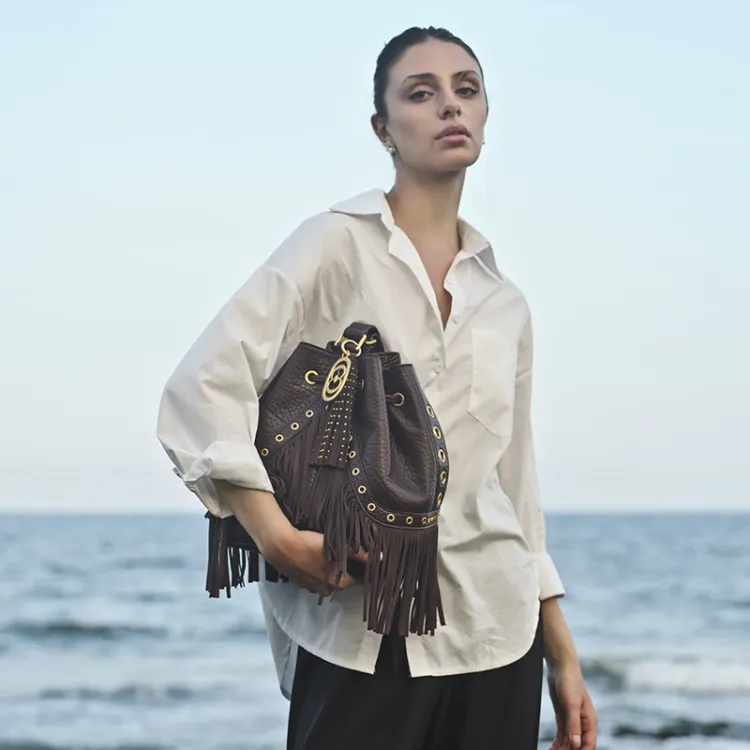 La Carrie Сумка через плечо из натуральной коровьей кожи Женская Темно-коричневая