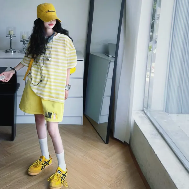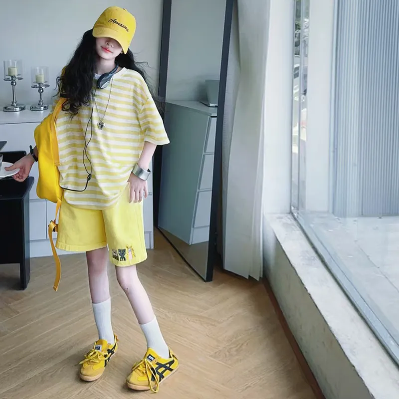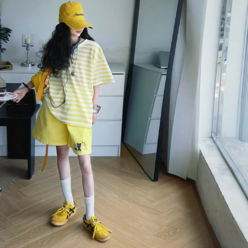 La Cergo Полосатая футболка Градиентные шорты Повседневная спортивная одежда для детей